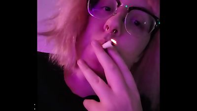 吸烟恋物癖大麻香烟短粉红色头发眼镜戴眼镜宝贝非裸脸仅全长