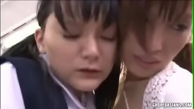 亚洲青少年艾若菜 (Ai Wakana) 在炎热的帮派欢闹会议中为 3 位朋友吹热射